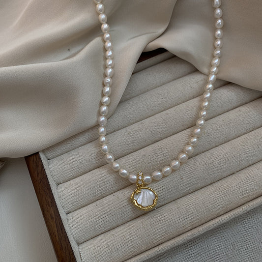 French Style Flower Baroque Pearl Necklace | Irregular Freshwater Pearl Choker for Women