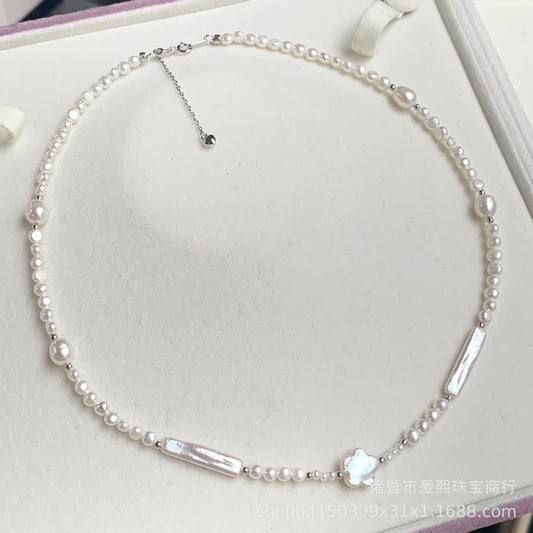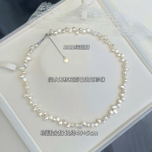 French Style Flower Baroque Pearl Necklace | Irregular Freshwater Pearl Choker for Women