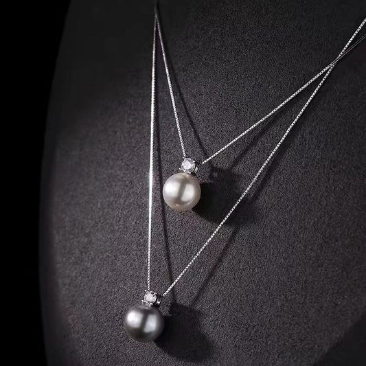 925 Silver Plated Double Layer Pearl Necklace for Women - Luxury Minimalist Choker